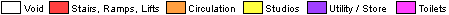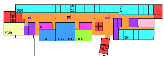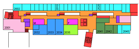The diagrams below are simplified plans of each floor of the building (except the basement). North is "up" the screen. The plans give a good indication of relative sizing, but are NOT TO SCALE.